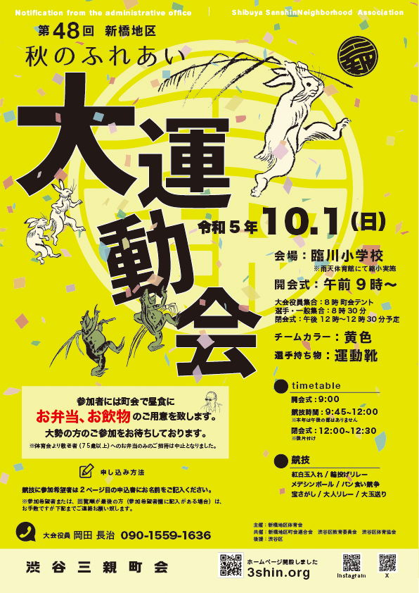 選手持ち物:運動靴 ※雨天の場合は体育館にて縮小実施