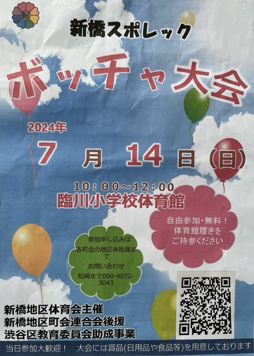 HOT EVENT ボッチャ大会2024 当日参加大歓迎! 日時 7/14(日)10:00〜12:00 場所 臨川小学校体育館 ▸ MAP 自由参加(無料) 賞品(日用品・食品など)あり! ※体育館履きをご持参ください